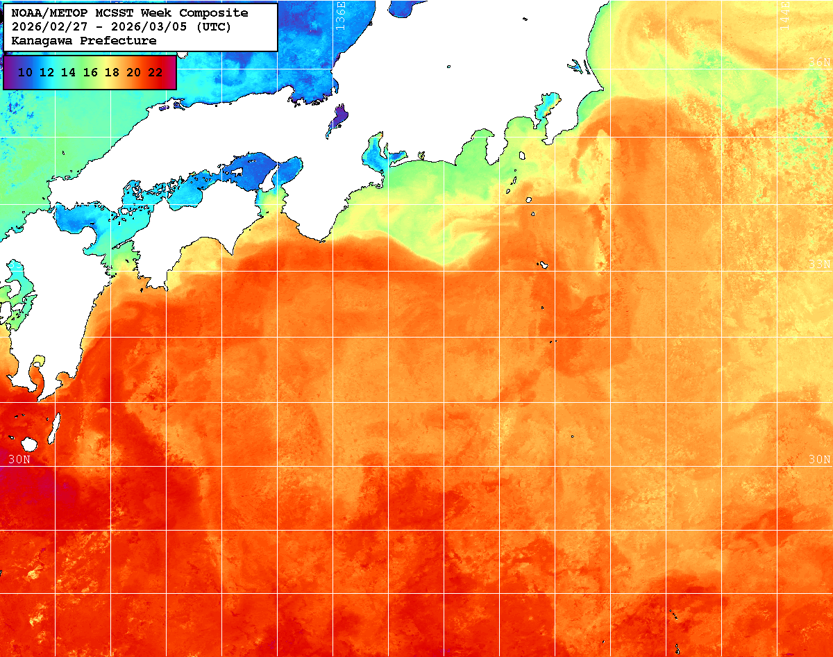 1週間合成画像 カラー水温分布図 (白黒水温分布図なし) |